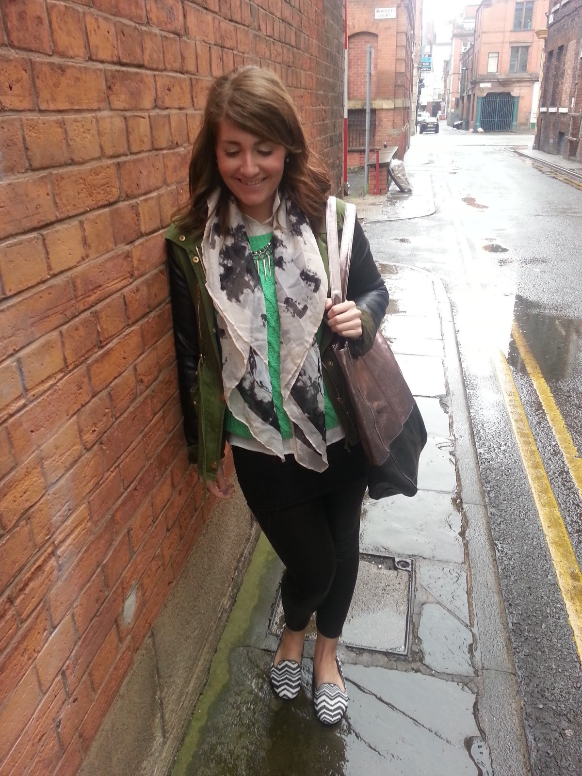 Leather Sleeved Mac- Huk (A Manchester based retailer) Jumper- H&M, Scarf- Primark